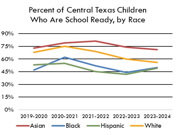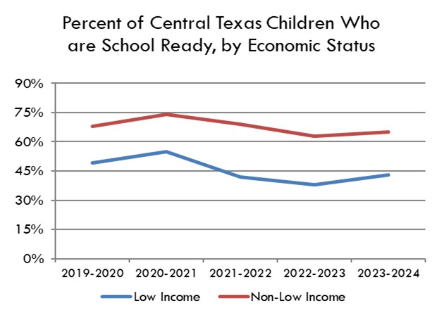 *In 2015, the definition of population contained in Central Texas region was reduced marginally and the measure of school readiness was changed slightly.